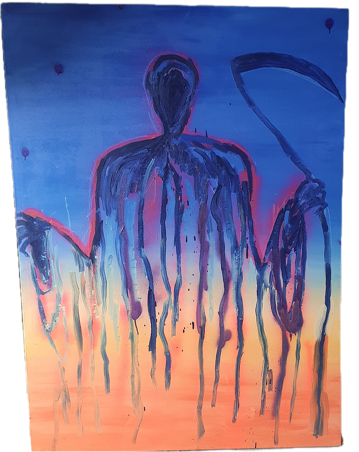 London-based artist Luc Waring created a series entitled Grim Reaper for the Second Renaissance Art of Impermanence exhibition which took place in Thénac, France in April 2024.